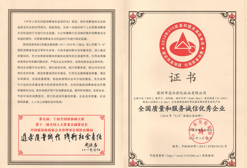 亮而彩美容儀器 > 榮譽資質