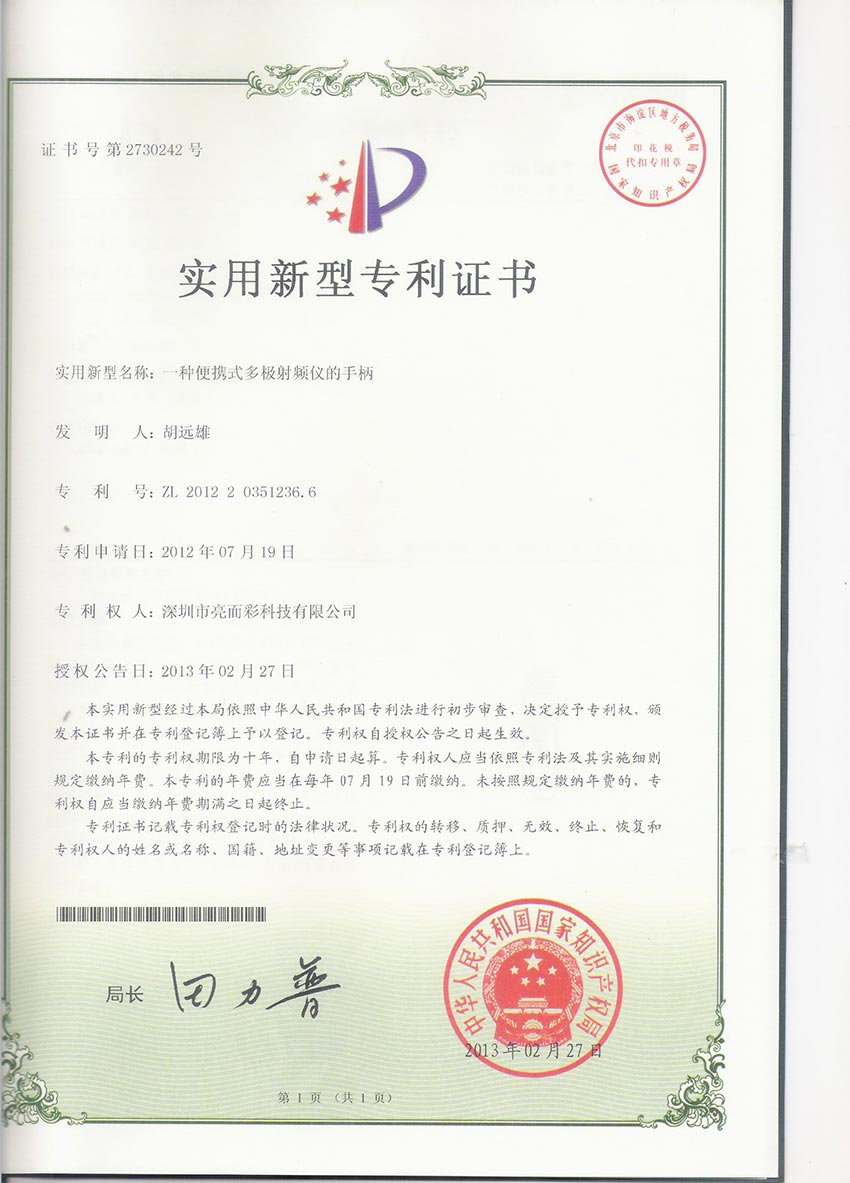 亮而彩美容儀器 > 榮譽資質