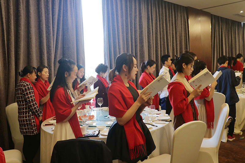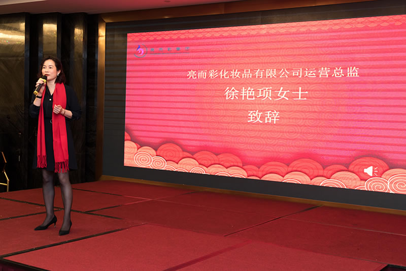 年會由亮而彩化妝品有限公司運營總監徐艷項女士首先致辭。徐總給我們分享了“讀懂你的董事長”這篇文章。分享說到我們這個世界是有瑕疵的,同樣,無瑕疵不是董事長的本質,也不是我們生命實際的狀況。每個人都走在路上,我們需要彼此成就,彼此用光明相互照見。真情切切的一番話讓在場的所有人都感到動容。