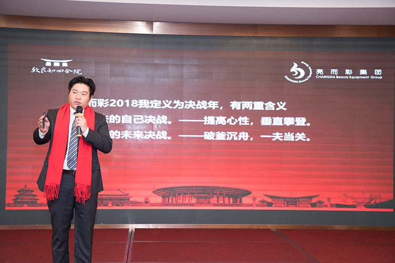 隨后,集團董事長胡遠雄先生緊接著致辭。胡董用“大時代,大風口,大機遇,大發展”12字概括了當下社會。接著回顧了2017年亮而彩的整體情況,盤點了亮而彩2017年10大焦點事件。同時對2018年的工作指明了方向:構建基于共同價值觀的命運共同體,擰成一股繩往一個方向使力。成就自己,讓自己成為亮而彩的四梁八柱。眾志成城,破釜沉舟,決戰2018!