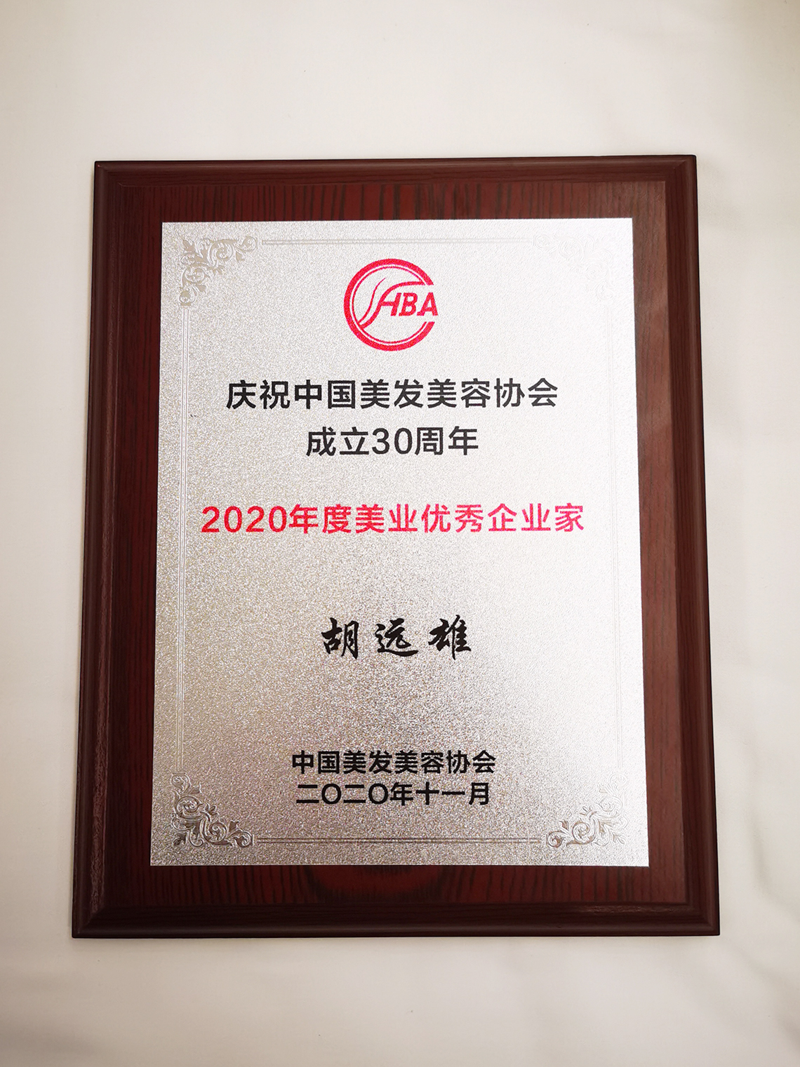 2020中國(撫州)國際美容美發節,亮而彩董事長胡遠雄先生作為深圳美協代表團成員之一,出席了此次中國美容美發協會成立30周年暨抗疫表彰大會盛典,榮獲了2020年度美業優秀企業家榮譽表彰獎項。