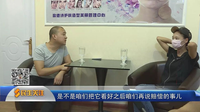 ![]() 美容院協(xié)商圖 小裴希望對方可以先墊付一部分醫(yī)藥費,讓她可以安心治病,但遭到了拒絕。 小裴:墊付的話,你們墊付五千出來。我因為后期還需要治liao。 工作人員:賠償是肯定要賠償?shù)摹N覀冞@邊意思就是,到醫(yī)院看病把單拿過來,我們給你報銷,或者是我們跟著人過去給你出費用。 |