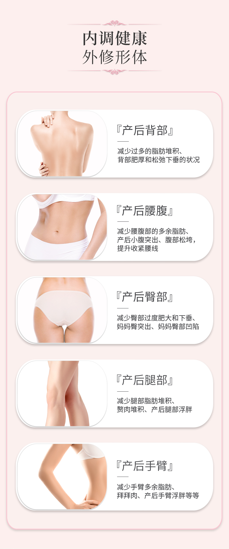 | 適用人群 | 產后體態不均想要減脂塑形人群 | ||