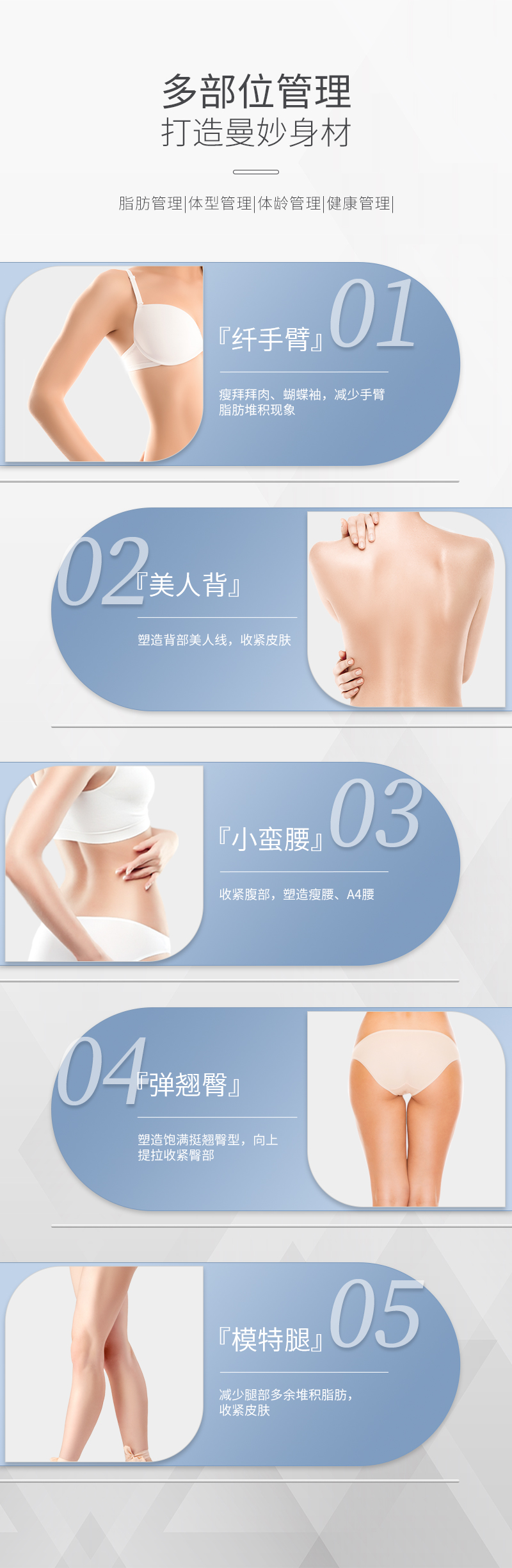 | 功效 | 美人背 1.改善背部脂肪堆積; 2.改善背部松垮下垂; 3.調節背部不適、增強基礎代謝; 4.塑造背部優美線條; |