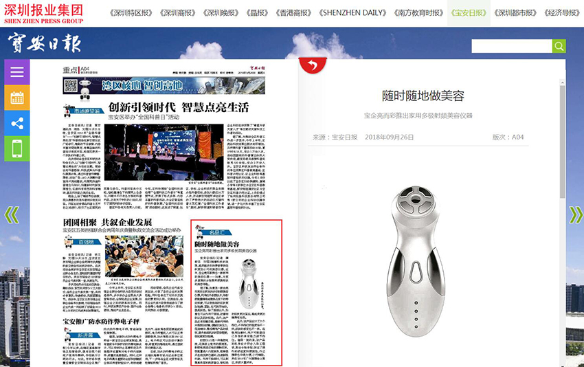 《寶安日報》寶企亮而彩推出家用美容儀器