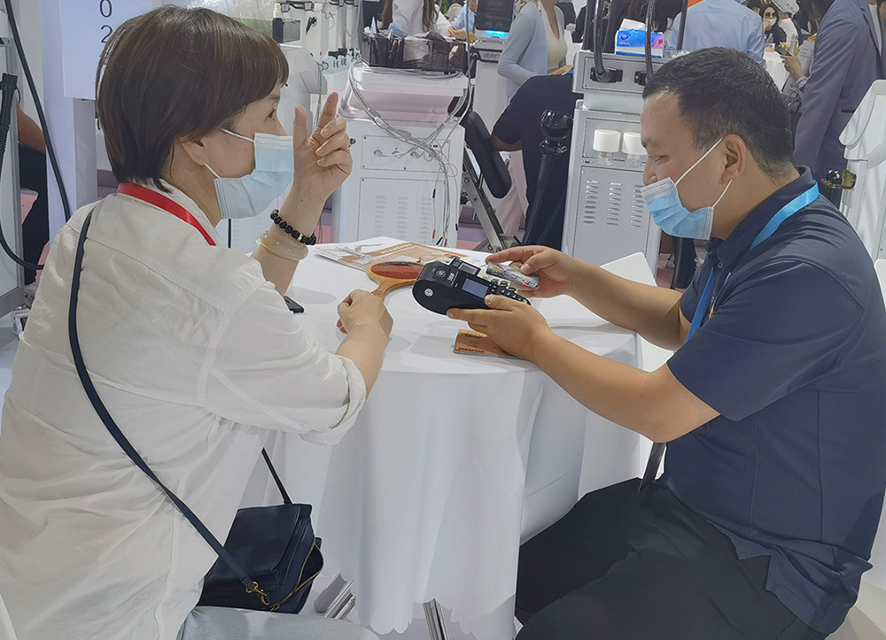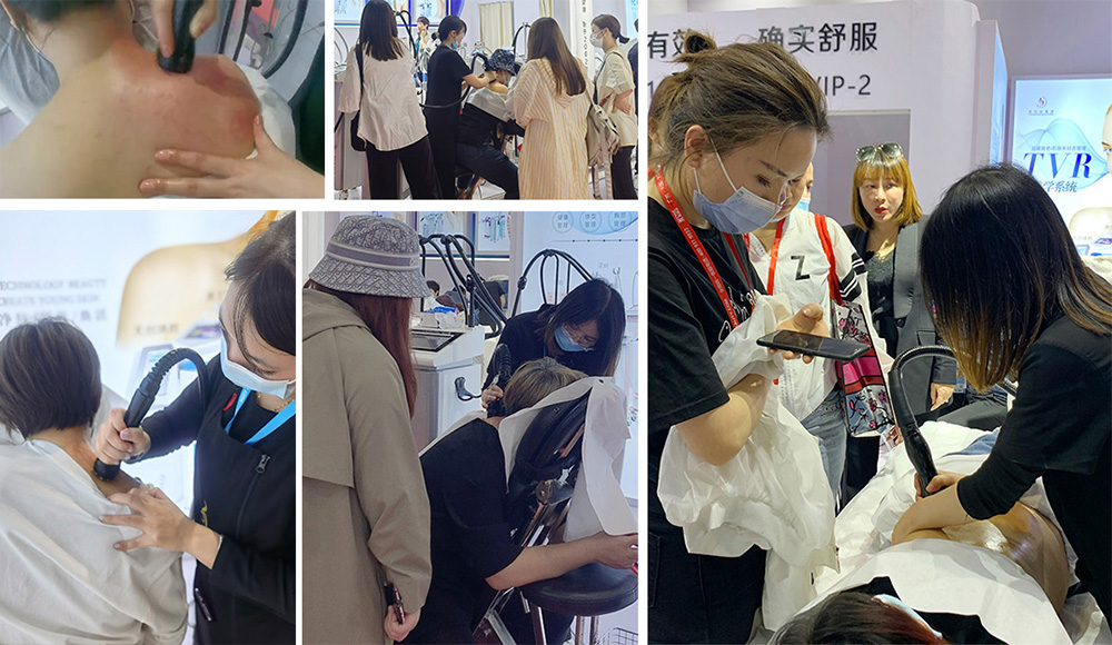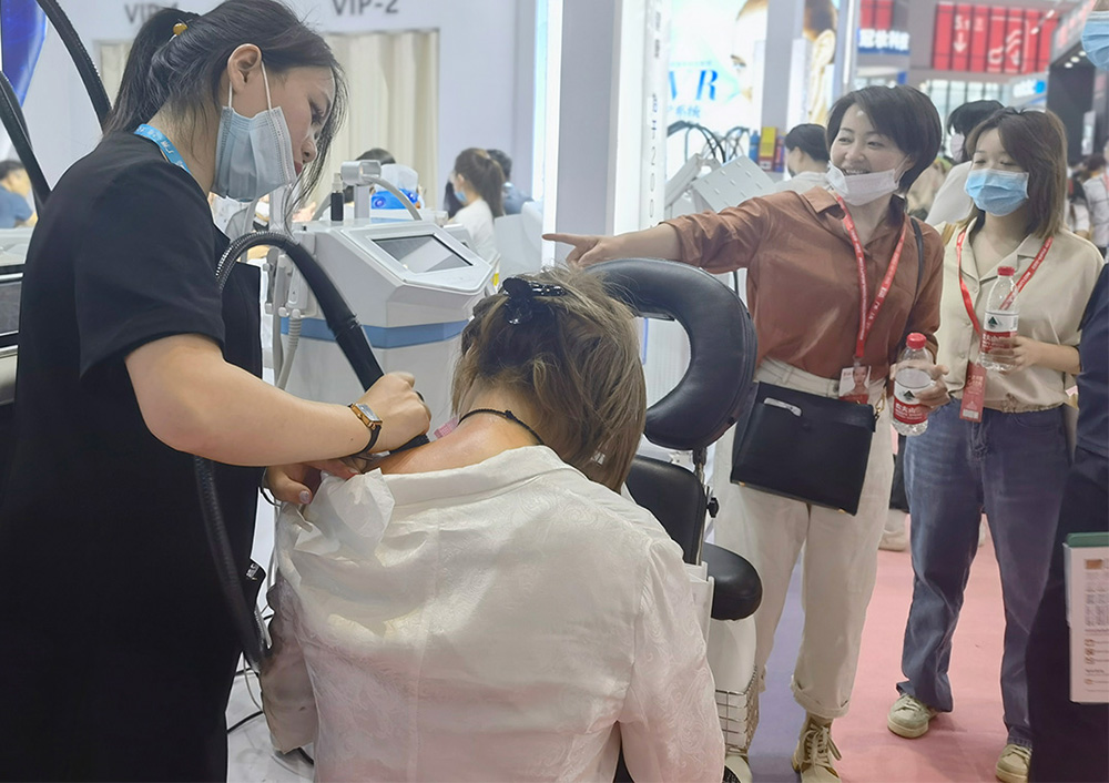 在展會中,顧客體驗著肩頸、腰部、背部等等不同的項目,亮而彩六大系統中包括有體齡雕塑、肌齡質感、科技養生、好孕保養、光學能量、私人定制等等項目儀器,全套系統項目儀器,從根源上有針對性的解決問題,全方面護理肌膚、調養身體、塑體塑型等等,可以給你帶來不一樣的體驗。
