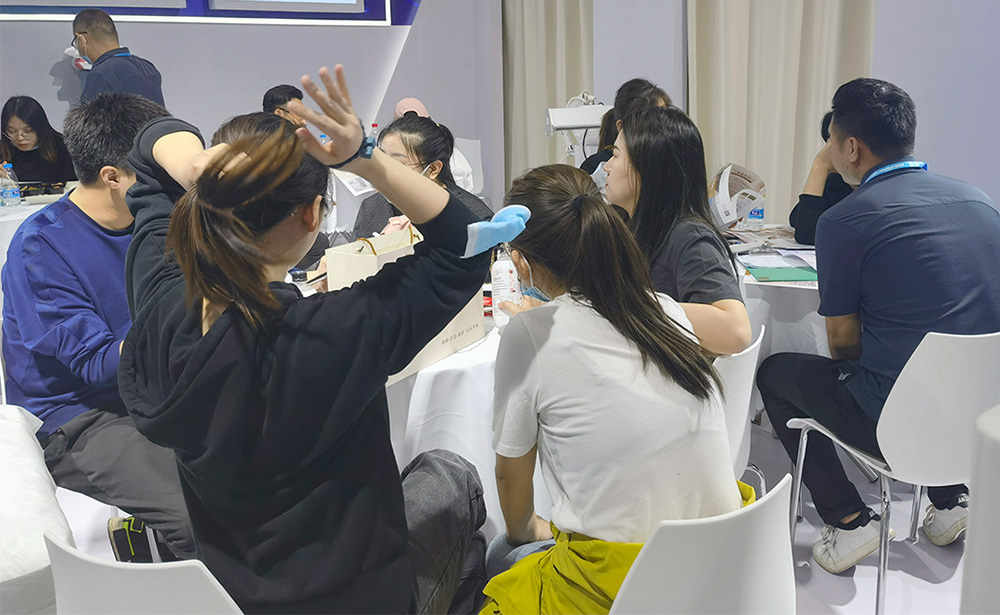 五月與你,與我相依,上海虹橋美博會精彩續力,又迎來了新的一波展客接踵而來,預約體驗爆滿,亮而彩展位體驗客戶依舊陸續不斷。