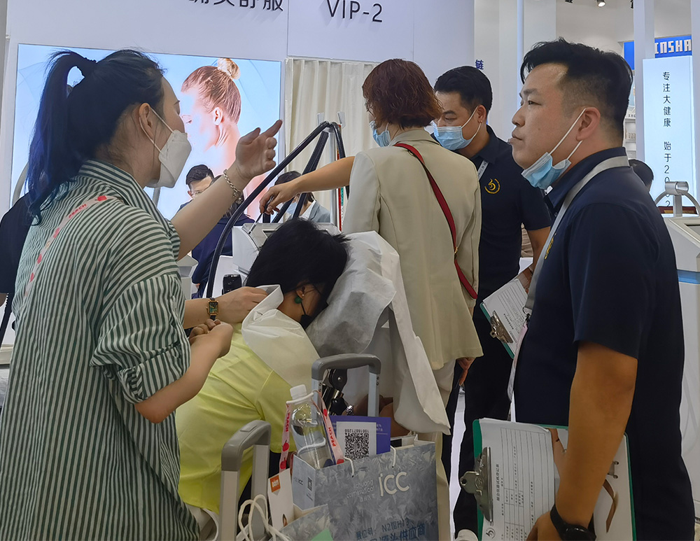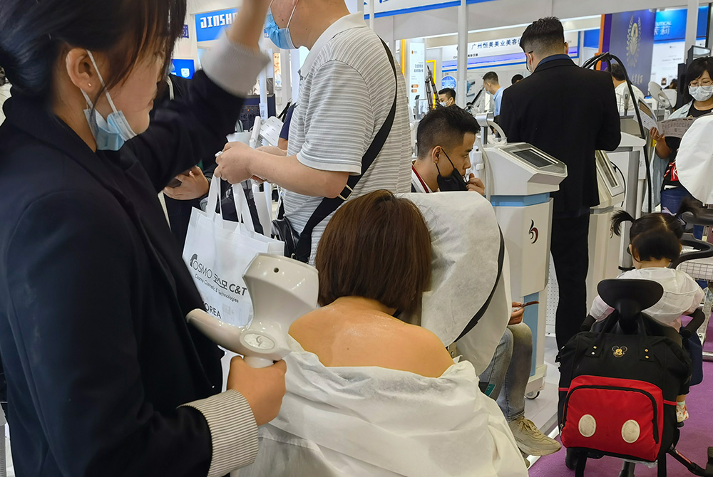 許多觀展商們更是直奔“面部精雕美學”而來,這個以無比溫和舒服,涵蓋煥活肌膚細胞、煥活膠原、重構筋膜方方面面的組合式護理設備,上了美容觀展商們的項目咨詢考察名單。