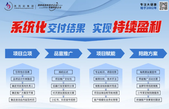在生活美容健康領域,項目選擇與盈利驅動是門店發展的關鍵。亮而彩基于2萬+合作店家案例,依托康養大師、妙纖大師V2.0等專業儀器,制定了“系統化賦能,陪跑共贏”的核心戰略。