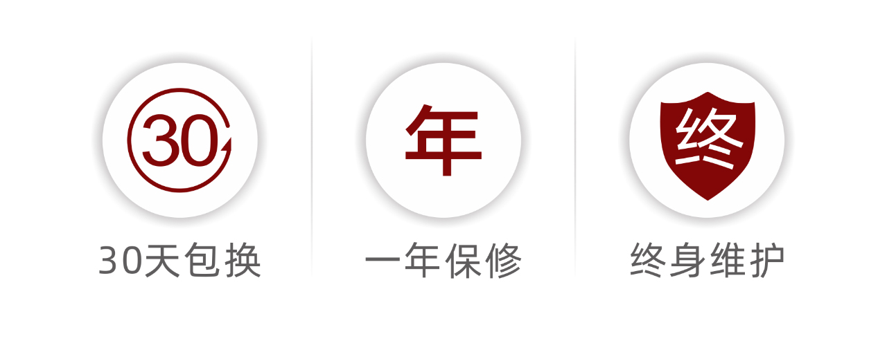 1、自產品售出之日起30天內,產品自身質量問題,不影響二次銷售的提供免費換貨、維修服務。