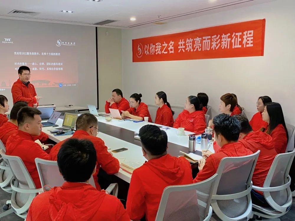 早上9點(diǎn)30分,員工準(zhǔn)時到達(dá),統(tǒng)一的文化衫,成了辦公室里一道靚麗的風(fēng)景線。入座后亮而彩集團(tuán)董事長胡遠(yuǎn)雄先生及亮而彩集團(tuán)總經(jīng)理徐艷和女士進(jìn)行致辭。先是對2021年的工作進(jìn)行了總結(jié)與贊揚(yáng),接著提出了2022“服務(wù)致勝年”的新目標(biāo),為大家在接下來的工作中指出了明確目標(biāo)。