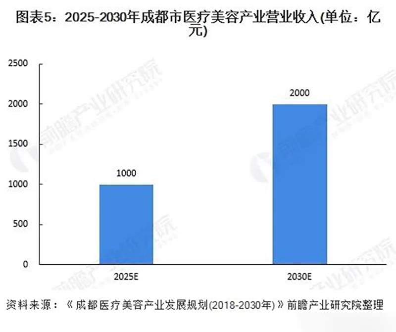 在政策扶持、資源集聚以及配套宣傳的帶動(dòng)下,預(yù)計(jì)成都市醫(yī)療美容產(chǎn)業(yè)質(zhì)量和規(guī)模將不斷提升,根據(jù)成都市經(jīng)信委編制的《成都醫(yī)療美容產(chǎn)業(yè)發(fā)展規(guī)劃(2018-2030年)》。到2025年,成都醫(yī)療美容產(chǎn)業(yè)營(yíng)業(yè)收入達(dá)到1000億元,2030年達(dá)到2000億元,成為全國(guó)領(lǐng)先、全球知名的“醫(yī)美之都”。