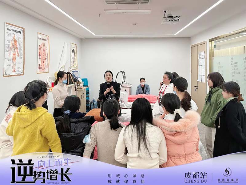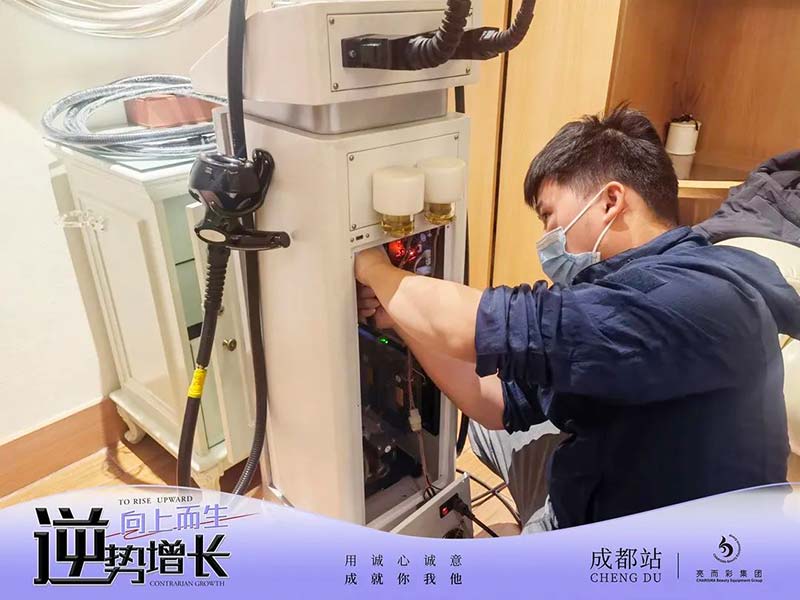 我們將前幾個片區的市場服務模式也帶到了成都。從儀器設備的檢修保養、美容護理等知識的授課和再培訓,甚至組合項目的新推方案,我們都一一為各門店提供了高質、深效的服務。