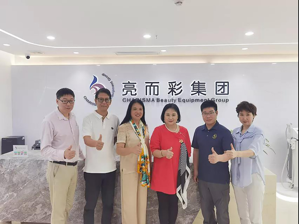 2021年10月29日,國際健身美容科技研究會(huì)主席、美容教母馮華教授,美容行業(yè)專家倪兆靜女士、陳永平先生等一行蒞臨亮而彩集團(tuán)總部參觀考察。