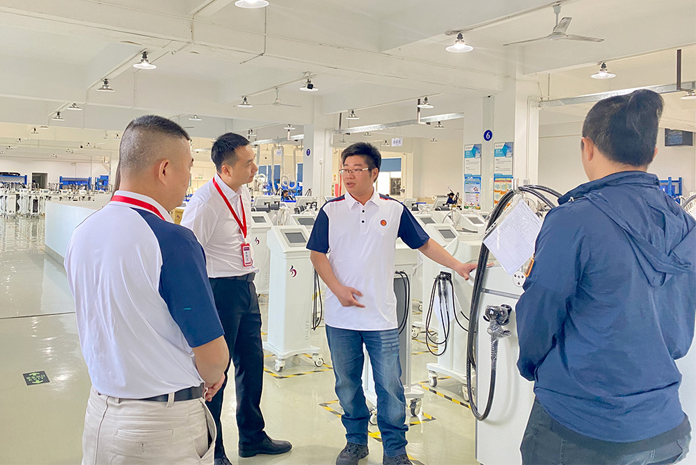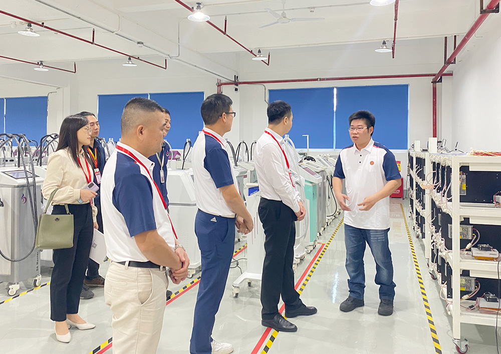 在當天,一行領導們在亮而彩集團董事長胡遠雄先生的陪同下,先后對亮而彩集團的生產研發、銷售服務、健康管理中心等各環節進行詳細考察。